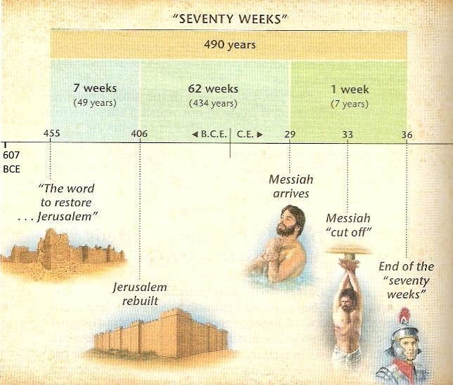 Daniel 9:20-27 GW ...I continued to pray, confessing my sins and the sins of my people Israel. I humbly placed my request about my God's holy mountain in front of the LORD (יהוה) my God. (21) While I was praying, the man Gabriel, whom I had seen in the first vision, came to me about the time of the evening sacrifice. He was exhausted. (22) He informed me, "Daniel, this time I have come to give you insight. (23) As soon as you began to make your request, a reply was sent. I have come to give you the reply because you are highly respected. So study the message, and understand the vision. (24) "Seventy sets of seven time periods have been assigned for your people and your holy city. These time periods will serve to bring an end to rebellion, (2 Pet 3:10) to stop sin, to forgive wrongs, to usher in everlasting righteousness, to put a seal on a prophet's vision, and to anoint the Most Holy One. (Rev 21:1-4) (25) Learn, then, and understand that from the time the command is given to restore and rebuild Jerusalem until the anointed prince comes, seven sets of seven time periods and sixty-two sets of seven time periods will pass. Jerusalem will be restored and rebuilt with a city square and a moat during the troubles of those times. (26) But after the sixty-two sets of seven time periods, the Anointed One will be cut off and have nothing. The city and the holy place will be destroyed with the prince who is to come. His end will come with a flood until the end of the destructive war that has been determined. (27) He will confirm his promise with many for one set of seven time periods. In the middle of the seven time periods, he will stop the sacrifices and food offerings. This will happen along with disgusting things that cause destruction until those time periods come to an end. It has been determined that this will happen to those who destroy the city."